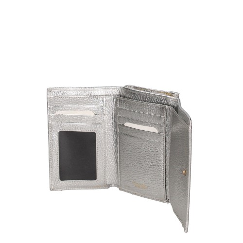 Un accessorio indispensabile per la donna moderna, questo portafoglio incarna l’eleganza senza tempo e la praticità quotidiana. Realizzato in pregiata vera pelle, questo portafoglio è un esempio di artigianalità e cura dei dettagli. La texture sofisticata della pelle, unita alla finitura impeccabile, lo rende un accessorio di lusso da portare con sé ovunque.