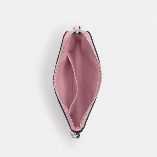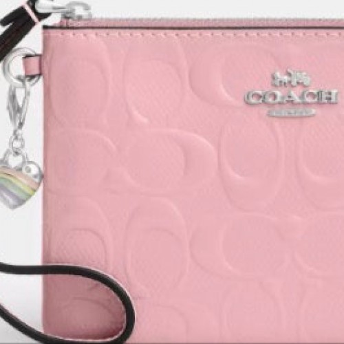 NWT Coach Corner Zip Wristlet Wallet In Signature Leather With Heart Charm In Silver/Pink