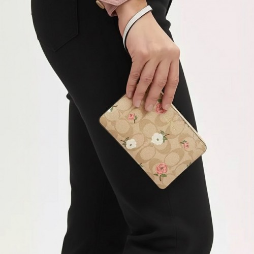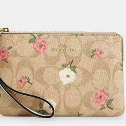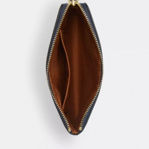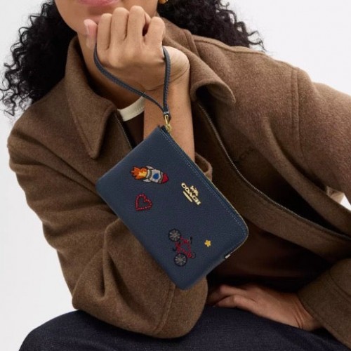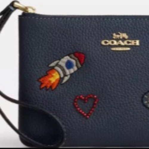 NWT Coach Leather Corner Zip Wristlet Wallet with Embellishments In Gold/Denim