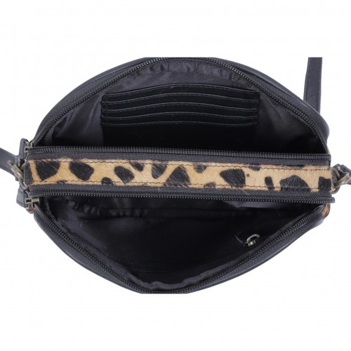 Rectangular wallet with adjustable/removable strap. Offset wallet comes with zippers and card holders.