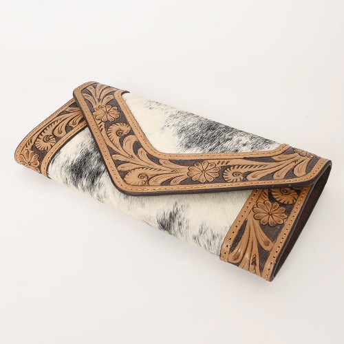 OHLAY Wallet Hand Tooled Hair-On Genuine Leather Women Bag Western Handbag Purse | Womens Handbags |Leather Belt for Summer