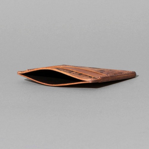 Extra card slot on the back. The ultimate minimalist leather card holder in a classic style. Handmade in Chicago from the finest Horween® leather. Frank the Enforcer provides the muscle for your essential cards and even a few folded bills in the large, middle slot.