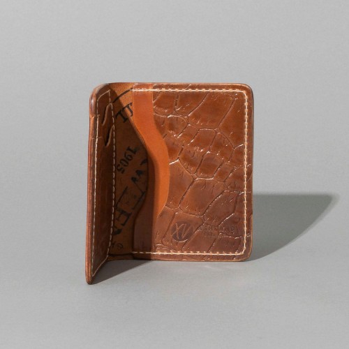 The 50/50 Bugs is a leather bifold wallet from Chicago, crafted with renowned Horween® leather. It features five card slots, including two vertical, two traditional and one hidden slot.
