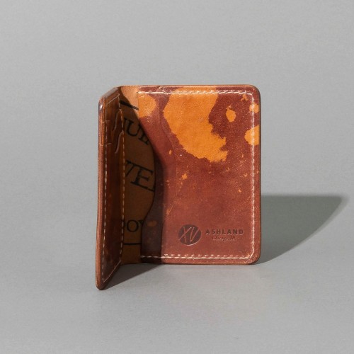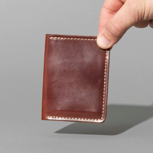 The 50/50 Bugs is a leather bifold wallet from Chicago, crafted with renowned Horween® leather. It features five card slots, including two vertical, two traditional and one hidden slot.
