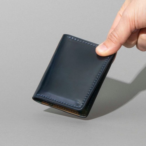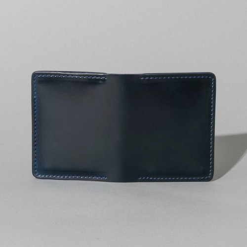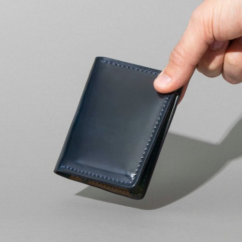 The Vertical Bugs Moran is a sleek, minimalist shell cordovan wallet crafted for front or back pocket carry. Precision-designed to maintain a thin profile, it is made in the USA using renowned Horween Leather. This model features vertically aligned card slots with discreet hidden compartments beneath each side, accommodating folded US Dollar bills with ease.