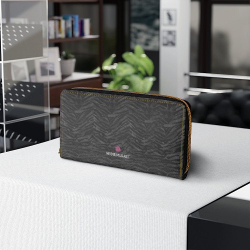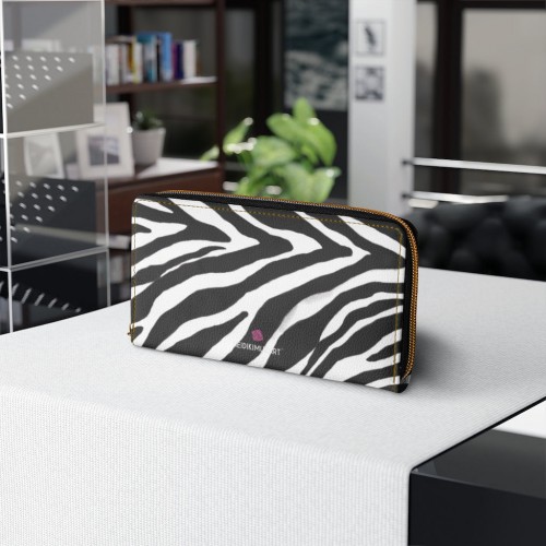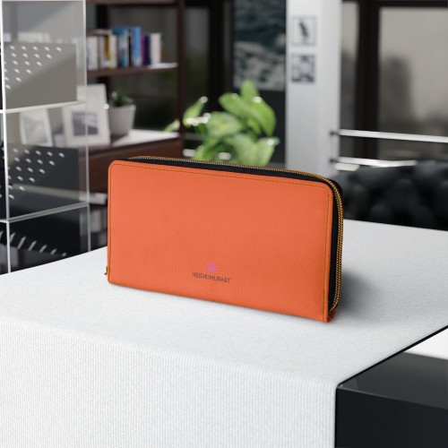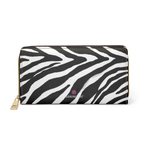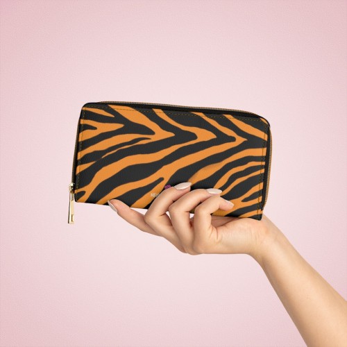 Orange Zebra Print Zipper Wallet, Best Zebra Striped Animal Print Gold Color Zipper Wallet For Women