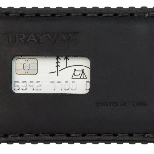 The wallet is sourced and made in the USA, backed by the Trayvax 65-year Heirloom Warranty.