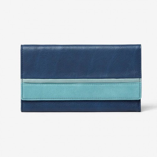 - Wallet has adjustable snap front closure. Interior has four full length pockets for bills and receipts, one with small gussets on both sides for added space.