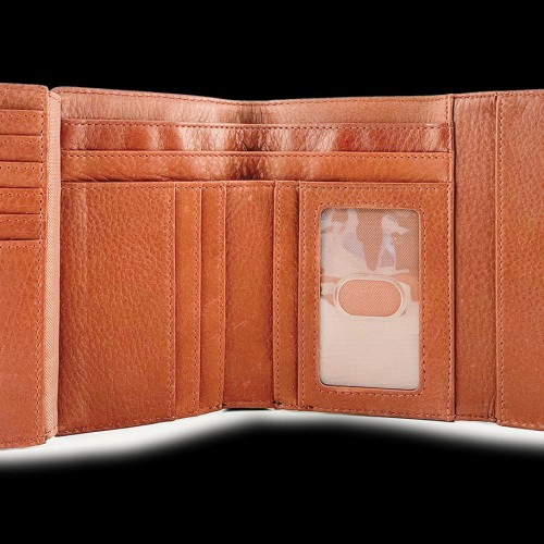- Three bill compartments, sixteen card pockets, ID window pocket, three additional slip pockets