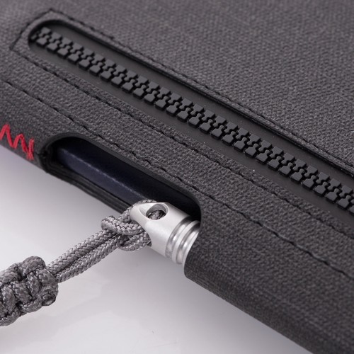 The P02 also holds a pen and notebook – It perfectly fits the Dango Pen.(Available in either satin silver or black). The P02’s unique “through-hole” design allows you to access your pen either from outside of the wallet, or inside of the wallet while reviewing your documents. In addition, a sleek water resistant pocket is present in the front for small items such as loose change.