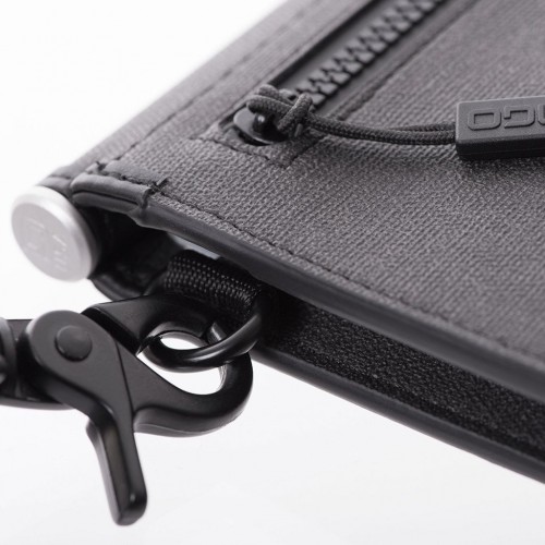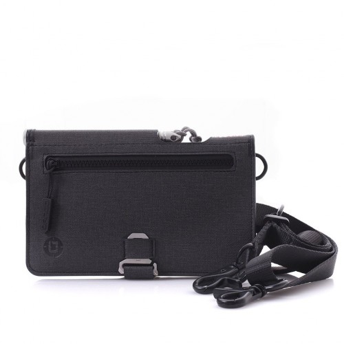 The P02 allows you to carry it like a traditional wallet or discreetly strap it to your body with the included adjustable shoulder strap. The strap can quickly clip on and off of its attach points.