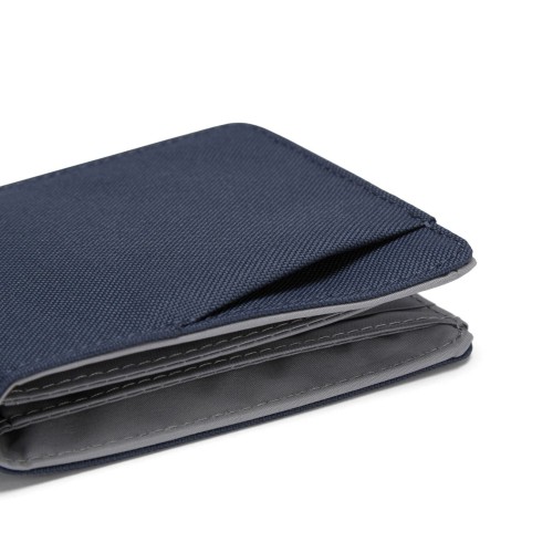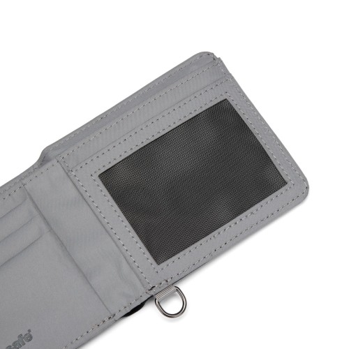 Sort your cards and cash in a slim wallet with RFID protection. This bifold wallet features 3 card slots, an ID window, and a discreet hidden pocket behind the bill compartment, perfect for securing high value bills or cards. The hidden pocket can also be used for separating different currencies while you travel. An easy-access card slot on the outside provides quick, one-tap access for your daily transport card. An attachment point for a cut-resistant strap (sold separately) allows for an added layer of protection.
