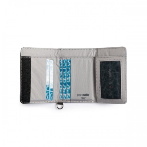 The RFIDsafe Trifold Wallet is a slim trifold that fits all currencies, offers RFID blocking protection for your credit cards and offers a velcro closure, a coin pocket and and an attachment point for a cut-resistant strap.