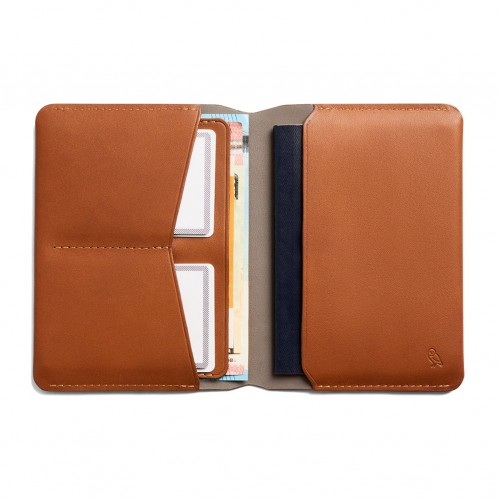 The rear slip pocket lets you keep your passport and boarding pass at hand, and open to the photo page, throughout check-in and boarding. Cards on the left, passport and boarding passes on the right. Then extras – flat bills, receipts – tuck behind, to keep things simple. A secret compartment hides cash away, while RFID blocking material shields your passport and cards from skimming.