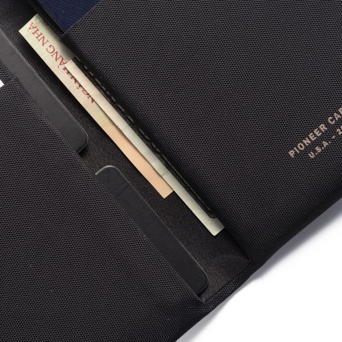 - Holds one passport (right-side), up to 8 cards, folded bills, tickets/receipts