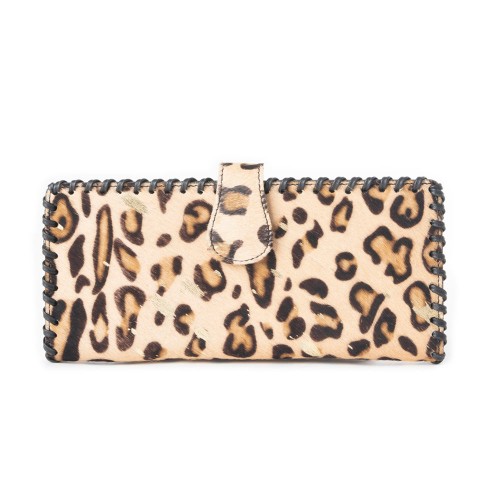 A compact delight, this card holder features a slim design with multiple card slots and a top zip compartment. The brown pebbled leather frame is accented with a geometric print upcycled canvas panel in pastel colors including turquoise, pink, yellow, and mint. The back offers additional card slots. Perfect for carrying just the essentials when you’re on the go!