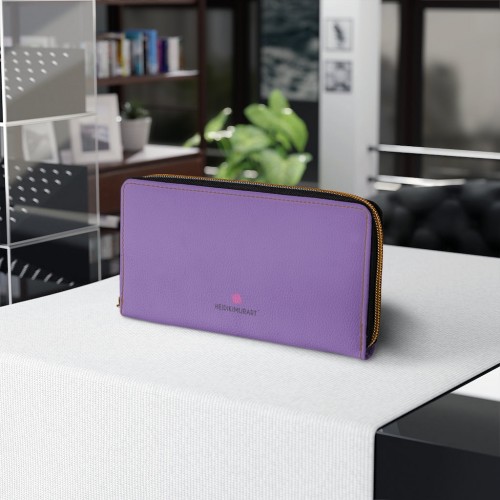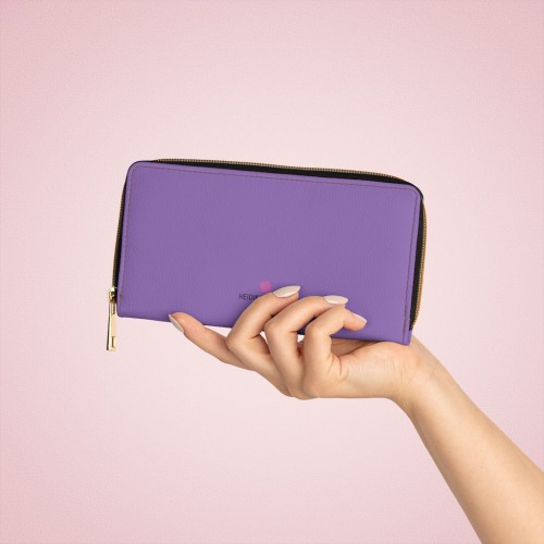 Pastel Purple Color Zipper Wallet, Solid Purple Color Long Compact Designer Premium Quality Women’s Wallet