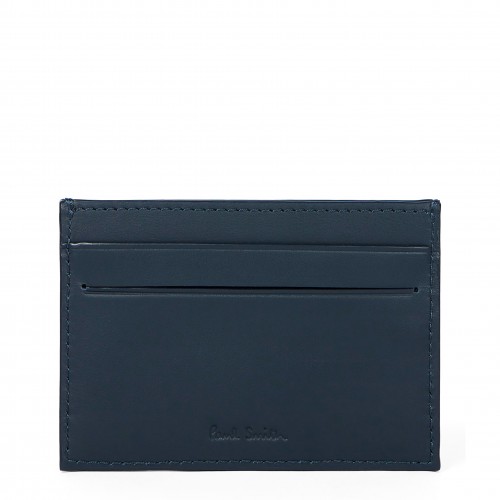 The Paul Smith Wallet Card Holder in Navy is crafted from premium leather and features the iconic Artist Stripe slip pocket on the front, adding a bold pop of colour. Compact and functional, it includes two rear card slots and a central compartment, perfect for keeping your everyday essentials organised. Combining sleek design with practical utility, this leather card holder is a refined accessory for daily use.