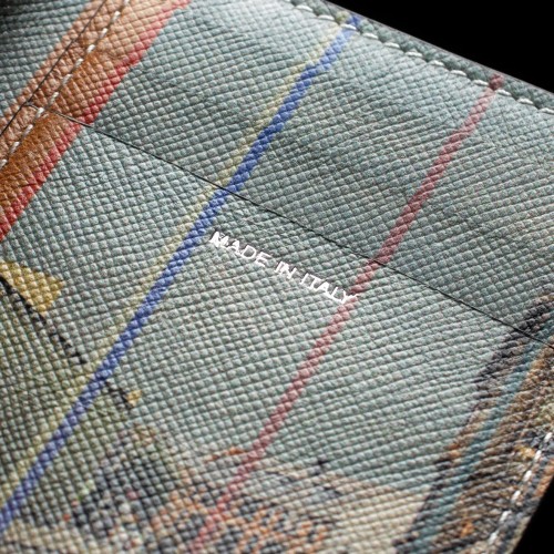- This mini cardholder from Paul Smith is made of black leather and features a designer logo. It has two receipt pockets, six card slots, and a ‘Nottingham’ printed lining. Dimensions include H: 7cm x W: 10cm.