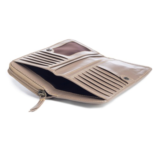 You’ll adore this gracefully beautiful wallet. The soothing hues of the upcycled woven canvas are perfectly embraced by beautiful smoky taupe leather. There’s plenty of space for your cards and cash, including a zippered pocket. Wrap-around zipper closure. A delightful addition to your wardrobe for any occasion!