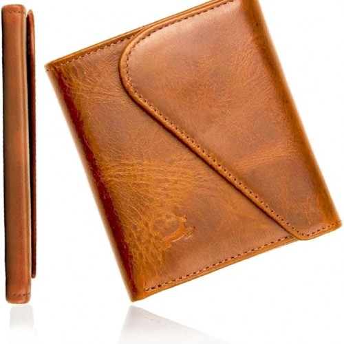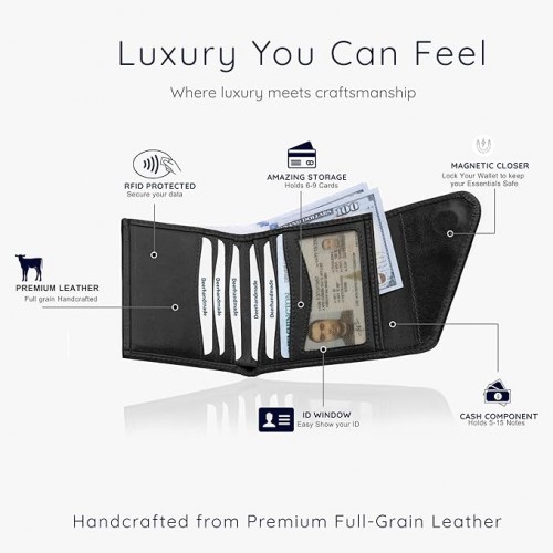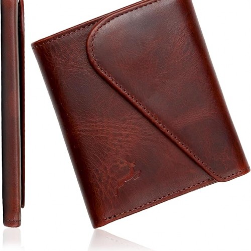 Personalized Deer Engraved Leather Wallet for Men – Custom Name Leather Bifold – RFID Blocking Christmas Themed Wallet – Gift for Dad, Husband, Boyfriend, or Outdoorsman