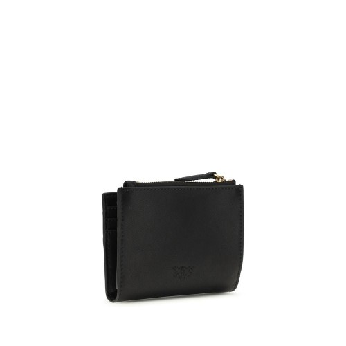 The Wallet with logo by Pinko is an elegant and practical accessory made from smooth leather. It offers numerous compartments for credit cards and documents, as well as a coin pocket with zip closure. The small strap closure is embellished with a metal plaque featuring the Love Birds logo, the brand’s distinctive symbol, adding an iconic touch to your look. A must-have to add to your bag.