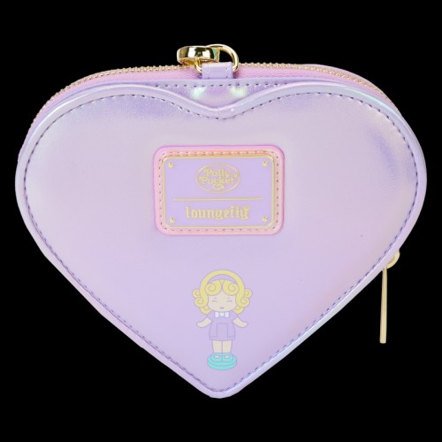 It’s Polly Pocket’s world, and we’re living in it! Prepare for pocket-sized perfection with a wallet shaped like a retro heart playset. Unzip the wallet to get the compact’s iconic silhouette as you store your important belongings inside. With iridescent details and classic character art, this wallet adds a spark of nostalgia to any outfit.