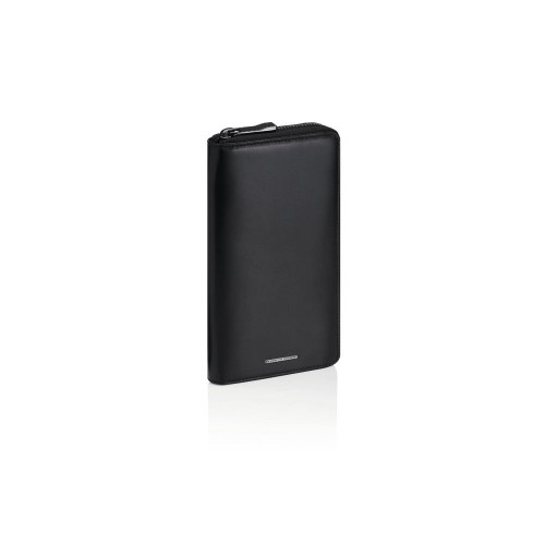 The elegant fusion of aesthetics and functionality: the Porsche Design Classic collection. High-quality, shiny smooth leather in black, seamlessly created exteriors and the characteristic metal Porsche Design logo plate give the Porsche Design Classic Wallet 6 a timeless and minimalistic style. The high-quality interior with signature design details is in line with the smart design: the vertical trifold wallet amazes through a spacious, functional interior design.