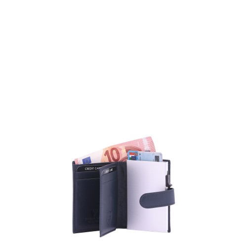Portafoglio da uomo. La chiusura è con bottone a pressione. Le tasche interne sono portacarte porta banconote e porta monete. Le tasche esterne sono una anteriore con aperta e una posteriore con zip. La tracolla è assente. Il manico è assente. Gli scomparti interni sono tre. Il materiale esterno è 100% Vera Pelle. Internamente è foderato in vera pelle. Misure: 7,5x10x2,5 cm . Prodotto Fashion