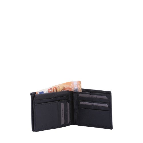 Portafoglio da uomo. La chiusura è assente. Le tasche interne sono portacarte porta banconote e porta monete. Le tasche esterne sono assenti. La tracolla è assente. Il manico è assente. Gli scomparti interni sono due. Il materiale esterno è 100% Vera Pelle. Internamente è foderato in vera pelle. Misure: 9,5×12,5×2,5 cm . Prodotto Fashion