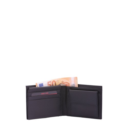 Portafoglio da uomo. La chiusura è assente. Le tasche interne sono portacarte porta banconote e porta monete. Le tasche esterne sono assenti. La tracolla è assente. Il manico è assente. Gli scomparti interni sono due. Il materiale esterno è 100% Vera Pelle. Internamente è foderato in vera pelle. Misure: 9,5x12x2,5 cm . Prodotto Fashion