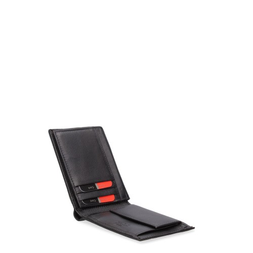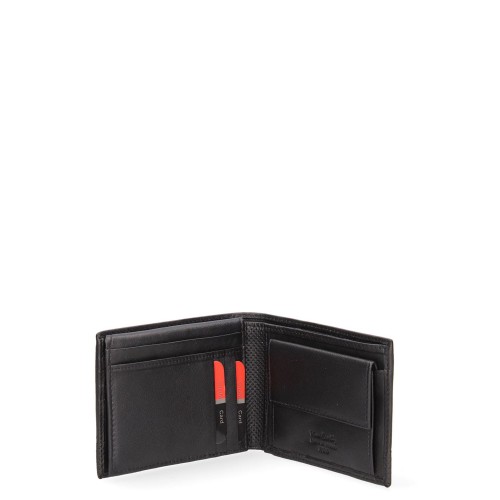 Portafoglio da uomo. La chiusura è con bottone a pressione. Le tasche interne sono portacarte porta banconote e porta monete. Le tasche esterne sono assenti. La tracolla è assente. Il manico è assente. Gli scomparti interni sono uno. Il materiale esterno è 100% Vera Pelle. Internamente è sfoderato. Misure: 12×9,5×2 cm . Prodotto Fashion