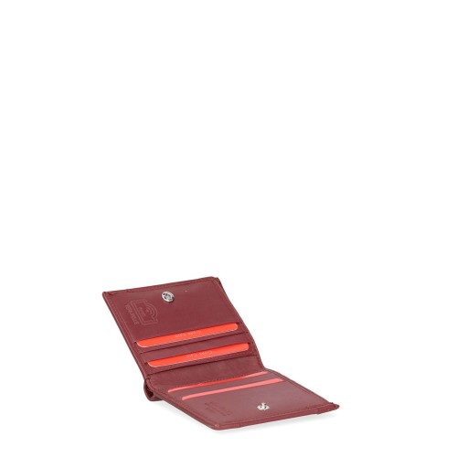 Portafoglio da uomo. La chiusura è con bottone a pressione. Le tasche interne sono portacarte. Le tasche esterne sono assenti. La tracolla è assente. Il manico è assente. Gli scomparti interni sono uno. Il materiale esterno è 100% Vera Pelle. Internamente è sfoderato. Misure: 9,5×10,5×2 cm . Prodotto Fashion