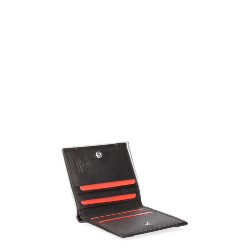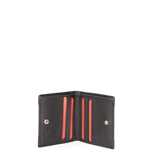 Portafoglio da uomo. La chiusura è con bottone a pressione. Le tasche interne sono portacarte. Le tasche esterne sono assenti. La tracolla è assente. Il manico è assente. Gli scomparti interni sono uno. Il materiale esterno è 100% Vera Pelle. Internamente è sfoderato. Misure: 9,5×10,5×2 cm . Prodotto Fashion