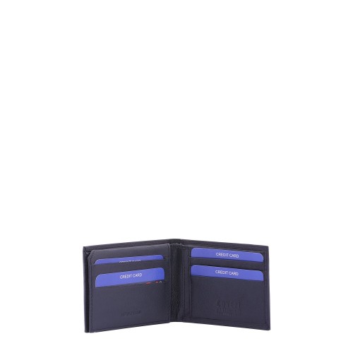 Portafoglio da uomo. La chiusura è assente. Le tasche interne sono portacarte e porta banconote. Le tasche esterne sono assenti. La tracolla è assente. Il manico è assente. Gli scomparti interni sono due. Il materiale esterno è 100% Vera Pelle. Internamente è foderato in poliestere. Misure: 9x11x2 cm . Prodotto Fashion