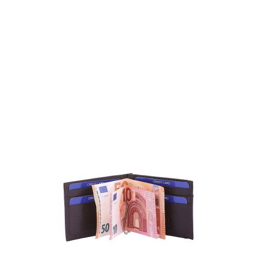 Portafoglio da uomo. La chiusura è assente. Le tasche interne sono assenti. Le tasche esterne sono una posteriore con clip. La tracolla è assente. Il manico è assente. Gli scomparti interni sono uno. Il materiale esterno è 100% Vera Pelle. Internamente è foderato in poliestere. Misure: 8×11,5×2 cm . Prodotto Fashion