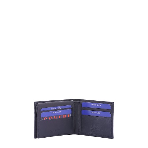 Portafoglio da uomo. La chiusura è assente. Le tasche interne sono portacarte e porta banconote. Le tasche esterne sono assenti. La tracolla è assente. Il manico è assente. Gli scomparti interni sono due. Il materiale esterno è 100% Vera Pelle. Internamente è foderato in poliestere. Misure: 9x11x2,5 cm . Prodotto Fashion