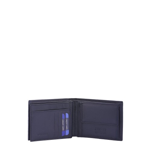 Portafoglio da uomo. La chiusura è assente. Le tasche interne sono portacarte porta banconote e porta monete. Le tasche esterne sono assenti. La tracolla è assente. Il manico è assente. Gli scomparti interni sono due. Il materiale esterno è 100% Vera Pelle. Internamente è foderato in poliestere. Misure: 9,5×12,5×2 cm . Prodotto Fashion
