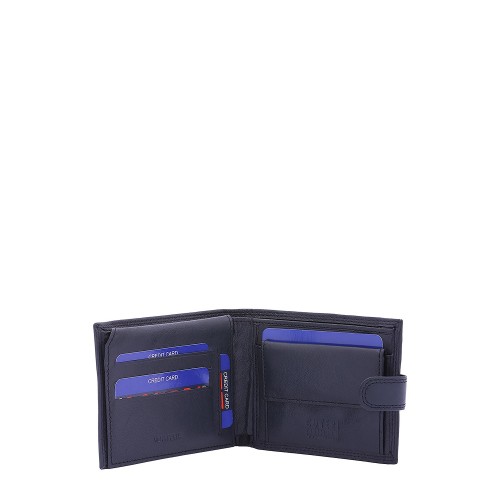 Portafoglio da uomo. La chiusura è assente. Le tasche interne sono portacarte porta banconote e porta monete. Le tasche esterne sono assenti. La tracolla è assente. Il manico è assente. Gli scomparti interni sono due. Il materiale esterno è 100% Vera Pelle. Internamente è foderato in poliestere. Misure: 10x13x3 cm . Prodotto Fashion