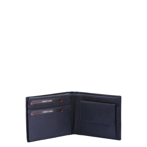 Portafoglio da uomo. La chiusura è assente. Le tasche interne sono portacarte porta banconote e porta monete. Le tasche esterne sono assenti. La tracolla è assente. Il manico è assente. Gli scomparti interni sono due. Il materiale esterno è 100% Vera Pelle. Internamente è foderato in poliestere. Misure: 9,5×12,5×2,5 cm . Prodotto Fashion