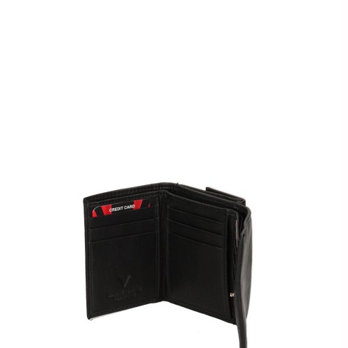 Portafoglio da uomo. La chiusura è con bottone a pressione. Le tasche interne sono portacarte e porta banconote. Le tasche esterne sono una posteriore con clip. La tracolla è assente. Il manico è assente. Gli scomparti interni sono uno. Il materiale esterno è 100% Vera Pelle. Internamente è foderato in vera pelle. Misure: 8x10x3 cm . Prodotto Fashion