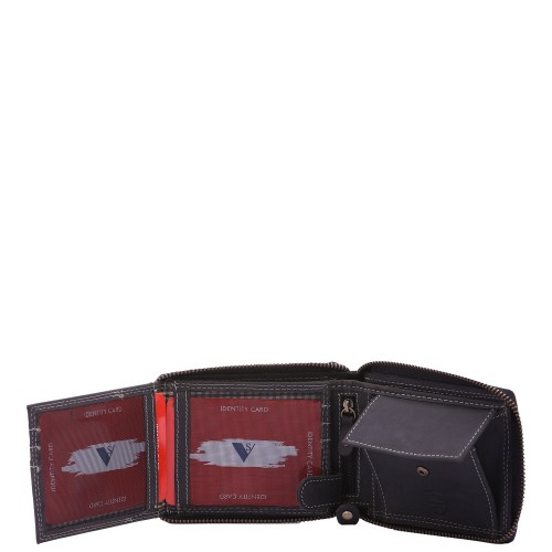 Portafoglio da uomo. La chiusura è assente. Le tasche interne sono una con zip, portacarte, 2 portabanconote e portamonete. Le tasche esterne sono assenti. La tracolla è assente. Il manico è assente. Gli scomparti interni sono tre. Il materiale esterno è 100% Vera Pelle. Internamente è foderato in poliestere. Misure: 9,5×12,5×2,5 cm . Prodotto Fashion