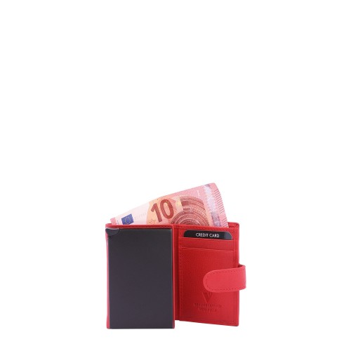 Portafoglio da uomo. La chiusura è con bottone a pressione. Le tasche interne sono portacarte porta banconote e porta monete. Le tasche esterne sono una posteriore con zip. La tracolla è assente. Il manico è assente. Gli scomparti interni sono tre. Il materiale esterno è 100% Vera Pelle. Internamente è foderato in vera pelle. Misure: 7,5x10x2,5 cm . Prodotto Fashion