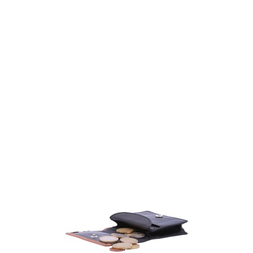 Portafoglio da uomo. La chiusura è assente. Le tasche interne sono una con zip e una aperta. Le tasche esterne sono assenti. La tracolla è assente. Il manico è assente. Gli scomparti interni sono due. Il materiale esterno è 100% Vera Pelle. Internamente è foderato in poliestere. Misure: 8,5x7x2 cm . Prodotto Fashion
