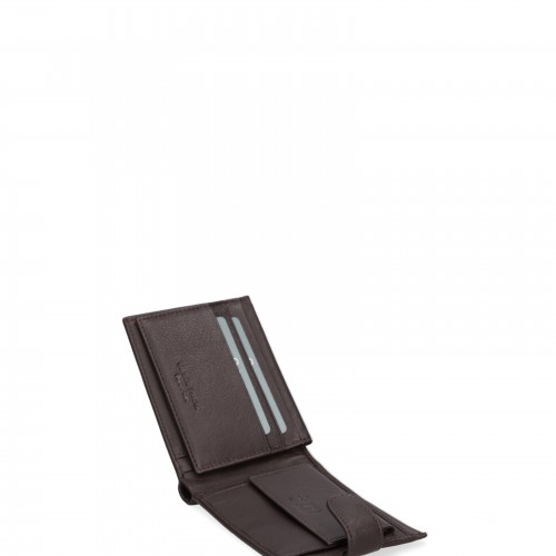 Portafoglio da uomo. La chiusura è con bottone a pressione. Le tasche interne sono portacarte. Le tasche esterne sono assenti. La tracolla è assente. Il manico è assente. Gli scomparti interni sono uno. Il materiale esterno è 100% Vera Pelle. Internamente è sfoderato. Misure: 12×9,5×2 cm . Prodotto Fashion