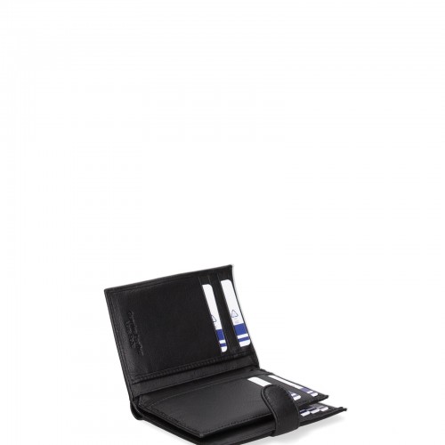 Portafoglio da uomo. La chiusura è con bottone a pressione. Le tasche interne sono portacarte. Le tasche esterne sono assenti. La tracolla è assente. Il manico è assente. Gli scomparti interni sono uno. Il materiale esterno è 100% Vera Pelle. Internamente è sfoderato. Misure: 9×12,5×2 cm . Prodotto Fashion