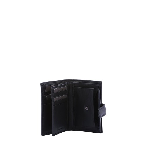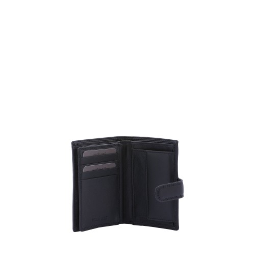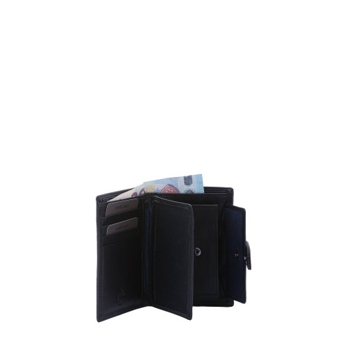 Portafoglio da uomo. La chiusura è con bottone a pressione. Le tasche interne sono portacarte porta banconote e porta monete. Le tasche esterne sono assenti. La tracolla è assente. Il manico è assente. Gli scomparti interni sono tre. Il materiale esterno è 100% Vera Pelle. Internamente è foderato in vera pelle. Misure: 13x9x2,5 cm . Prodotto Fashion
