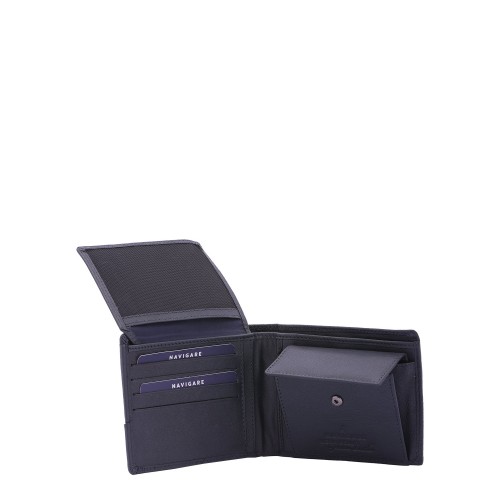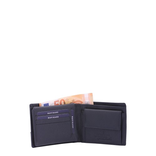 Portafoglio da uomo. La chiusura è assente. Le tasche interne sono portacarte porta banconote e porta monete. Le tasche esterne sono assenti. La tracolla è assente. Il manico è assente. Gli scomparti interni sono due. Il materiale esterno è 100% Vera Pelle. Internamente è foderato in poliestere. Misure: 10x12x2,5 cm . Prodotto Fashion