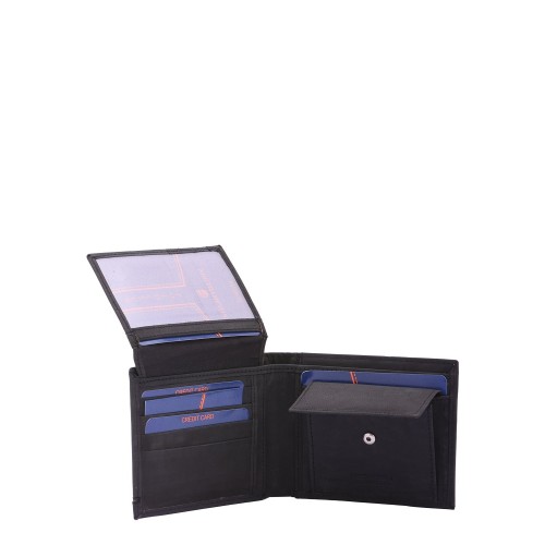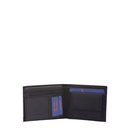 Portafoglio da uomo. La chiusura è assente. Le tasche interne sono portacarte porta banconote e porta monete. Le tasche esterne sono assenti. La tracolla è assente. Il manico è assente. Gli scomparti interni sono due. Il materiale esterno è 100% Vera Pelle. Internamente è foderato in vera pelle. Misure: 10x12x3 cm . Prodotto Fashion