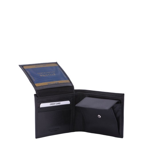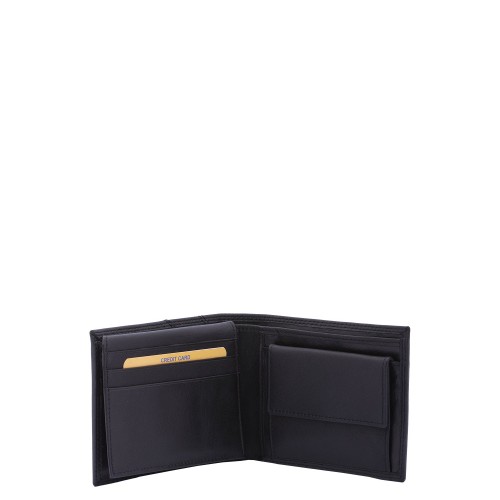 Portafoglio da uomo. La chiusura è assente. Le tasche interne sono portacarte porta banconote e porta monete. Le tasche esterne sono assenti. La tracolla è assente. Il manico è assente. Gli scomparti interni sono due. Il materiale esterno è 100% Vera Pelle. Internamente è foderato in vera pelle. Misure: 9,5x12x3 cm . Prodotto Fashion
